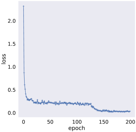 The abscissa represents the epoch number (a total of 200 epochs), and the ordinate represents the loss value of the model. It can be seen from the figure that the loss value of TSMASAM shows a small range of fluctuation in the early training period, and then quickly converges and maintains a low oven for a long time.