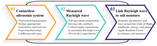 Overview of the proposed contactless ultrasonic method used in this study to estimate soil moisture.