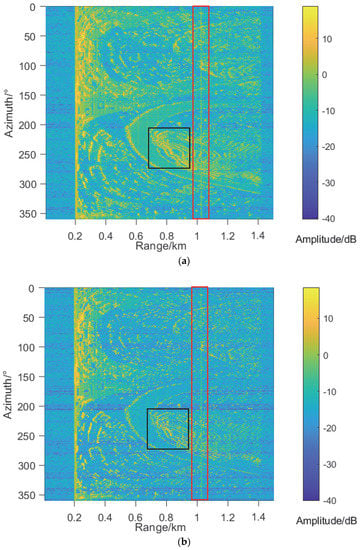 The main parameters of the radar in the experiment are as follows: the carrier frequency is 9.35 GHz, the pulse repetition frequency PRF is 40 KHz, and the bandwidth B is 20 MHz. The vertical and horizontal beamwidths are set to 10° and 1°, respectively, and the surface scattering coefficient is assumed to be 0.1.