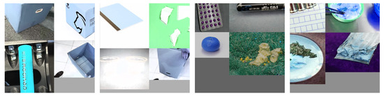 The TrashNet data set from Stanford University is currently the most used in garbage classification research, which consists of 2527 photos divided into 6 categories: plastic, metal, cardboard, paper, glass, and trash [25]. In China, garbage is divided into four main categories: recyclable garbage, harmful garbage, wet garbage, and dry garbage, with each category containing multiple types of waste. The TrashNet data set has few categories and does not match the categories of the Chinese garbage classification. In order to conform to the actual situation in China, we collected a dataset of domestic waste images according to the relevant standards. Some of the samples in the data set are shown in Figure 1, which are consistent with China’s garbage classification. The data set adopts the annotation format of VOC2007 and divides garbage into four categories and 11 sub-categories: recyclable garbage, food garbage, harmful garbage, and others. Recyclable garbage includes paper product, plastic container and glass container. Food garbage includes leftover, vegetable and fruit. Harmful garbage includes battery and drug. Other garbage includes soiled paper, chopstick and cigarette end. The total number of images was 4561, and each waste class was randomly divided such that 80% would be used for training, and the remaining 20% would be used for testing. The distribution of the number of images in each category in the training and test sets was the same.