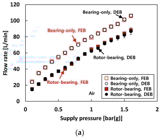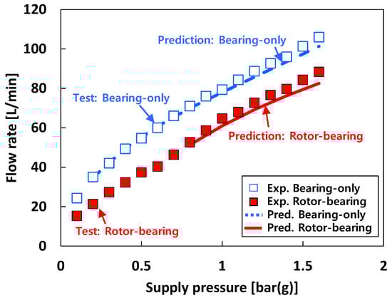 The inlet flow rate of each recess from the orifice is calculated using Equation (1) for incompressible fluid and Equation (2a) for compressible fluid. Note that the orifice discharge coefficient used in Equations (1) and (2a) are determined from the test data.