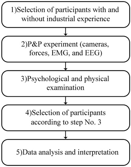 As may be noted, P&P safety risks could be divided into (1) ergonomics (workplace-related) and (2) individual (poor health habits or physical conditions) [23]. While the first topic is well studied in the literature, recent studies have started paying more attention to the studying correlation between WMSDs and individual operator characteristics and/or behavior in the workplace [24,25]. In this study, we aim to analyze in detail P&P safety by enveloping the above-mentioned aspects.