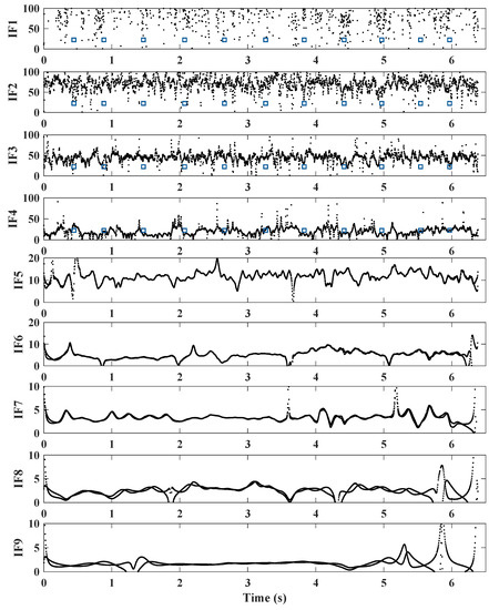 where j is imaginary unit, and represent instantaneous amplitude and phase functions of the rth IMF, respectively. By differentiating the phase functions with respect to time, the IFs can be calculated [47]. A Hilbert Spectrum can then be plotted using the real part of the IFs in the time and frequency domains.