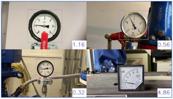 This paper uses a PC as the development and testing platform, and Python and OpenCV are used as the development tools. There are four test videos in our experiments. Video 1, Video 2, and Video 3 are videos with a circular gauge taken from the internet and Video 4 is a video with an arc gauge taken by this study’s authors. Figure 16 shows the gauges detected by YOLOv4. The detected regions of the gauges are clipped as the input images in our experiments.