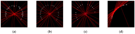 Results of Double Hough space voting. (a) Circular gauge. (b) Circular Gauge with negative dial value. (c) Circular Gauge with floating dial value. (d) Arc gauge.