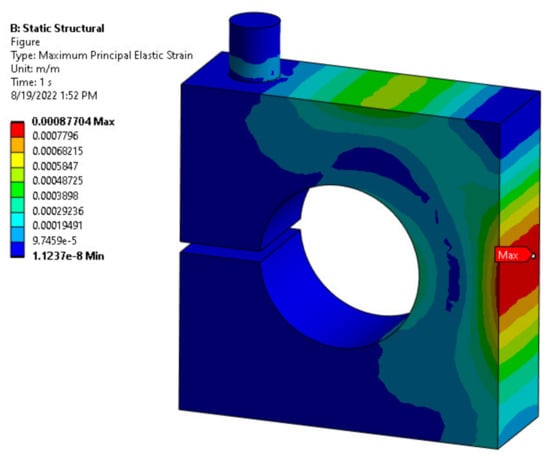The maximum strain is related to the load cell’s applied force and material property in Young’s modulus (E). It can be expressed as [41]: