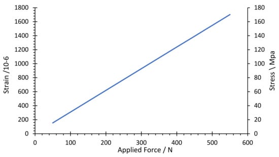 The gauge factor is a quantitative expression of the strain gauge’s essential property known as sensitivity to strain (). The gauge factor is described as the proportion of the fractional transformation in length (strain) to the fractional shift in electrical resistance [42]: