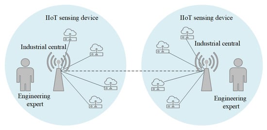 Figure 1 illustrates that a representative IIoT architecture usually consists of three categories of entities: industrial IoT sensing devices, an industrial central, and an engineering expert [], which, respectively, represent sensors, the gateway, and the user in WSNs. IIoT sensing devices are leveraged to monitor the status of objects and gather data, which is subsequently forwarded to a gateway via a wireless channel. A user is able to access the data collected by the gateway in real time. Sensors, in general, have low processing power, limited computational capabilities, and restricted energy and storage capacity, whereas gateways have a strong capacity for data processing [].