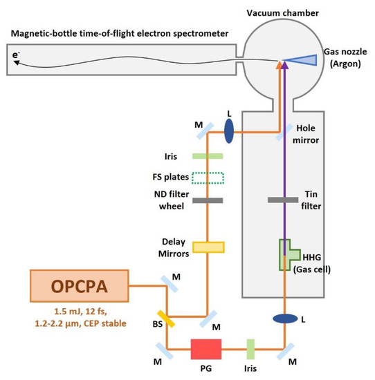 - Hentschel, M.; Kienberger, R.; Spielmann, C.; Reider, G.A.; Milosevic, N.; Brabec, T.; Corkum, P.; Heinzmann, U.; Drescher, M.; Krausz, F. Attosecond metrology. Nature 2001, 414, 509–513. [Google Scholar] [CrossRef] [PubMed]