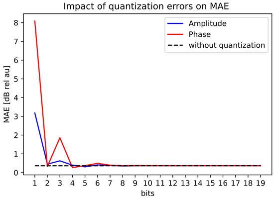 Lastly, the effect of the quantization on the amplitude and phase was analyzed. It can be concluded that the quantization of the phase was more sensitive than the quantization of the amplitude. A quantization of at least 8 bits for the phase and 5 bits for the amplitude gave performance comparable to having no quantization.