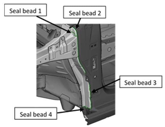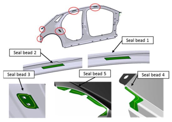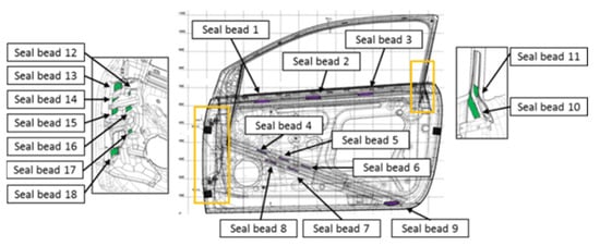 One of the main tasks that manipulator robots have in the workshop is the application of a sealer to different parts of the vehicle. Sealing is a technique that the designer frequently uses. The sealer is used in assembly processes for its great efficiency, ease of implementation and low cost [5]. In addition, the sealers used in the automotive sector have different purposes, such as ensuring the joining of parts, preventing water entry or avoiding vibrations between parts [6]. The application of the sealer using robots is used widely in this sector since it eliminates the human factor from the process [7]. To ensure an optimal process, it is necessary to use programming adapted to the bond quality of all relevant parameters, such as the flow rate of the sealer, the application speed and the application pressure. In addition, since the sealer application is performed by an industrial robot, the performance of the manipulator robot’s arms must be optimized to guarantee high productivity.