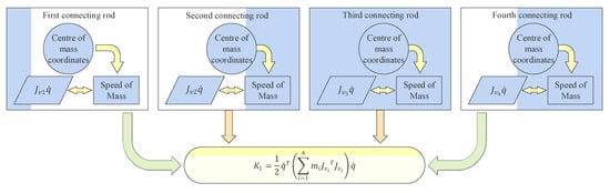 where represents the kinetic energy of the translational part, and is the mass of different connecting rods. The detailed calculation process is illustrated in Figure 4.