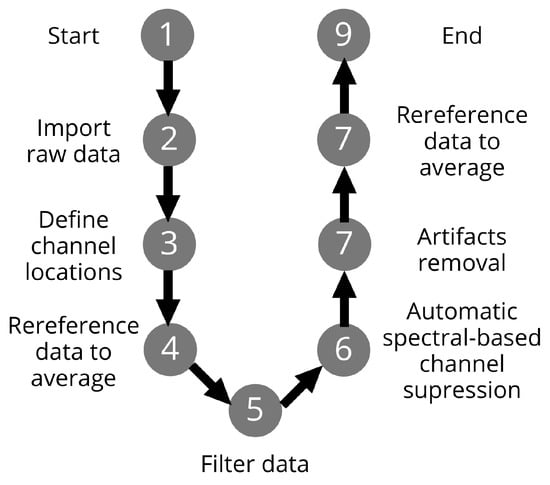The steps of offline preprocessing of raw EEG signals are shown in the flowchart, see Figure 6.