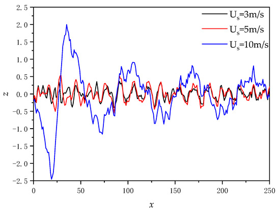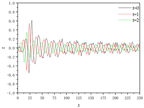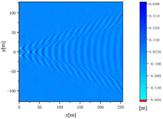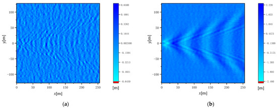 - The discrete intervals ∆x and ∆y of the sea surface were set to simulate the generation of Nt samples of the sea surface after the superposition of the ship wake and the sea surface with the time interval τ. If τ is small enough, the sample can be considered stationary at that time interval.