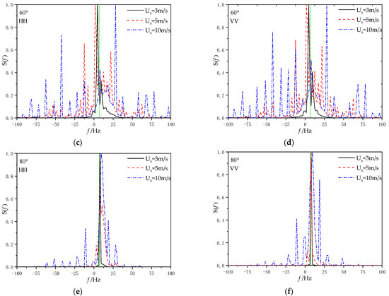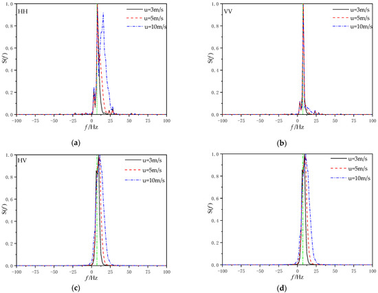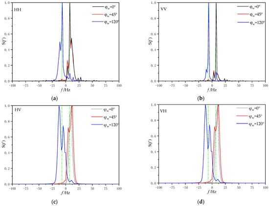 - The Doppler spectra of the obtained scattering field time series are calculated according to the standard spectrum estimation method expressed in Equation (18).