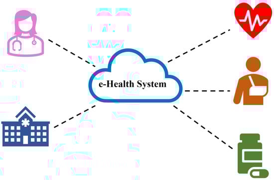 e-Health Applications—Smart health systems [49], as shown in Figure 10, enable the exchange of sensitive and personal data between doctors and patients. If the doctors have timely access to a patient’s medical information, this can result in better advice and medical services. The privacy of these data can be threatened if these sensitive data are exposed to an open network. Furthermore, since most health sensors and mobile devices have constrained resources, quickly producing and processing ciphertexts can be challenging.