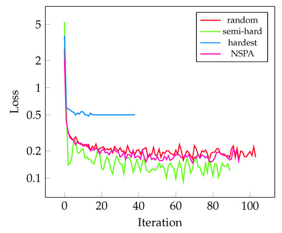 Wu et al. showed [12] that sampling matters, and it is even more significant than the selected loss function—or the hyperparameters of the selected function—in achieving high performance. The first sampling method was proposed in the original paper by Schroff et al. [8]: semi-hard negative sampling showed great potential in converging to optimal clustering. A similar approach (although for Siamese nets) was proposed by Simo-Serra et al. [15], where positive pairs and negative pairs were sorted by loss in descending order, and used for training accordingly. Harwood et al. [16] proposed an online mining method based on semi-hard sampling of negatives. Hermans et al. [17] showed that the use of hard positive sampling is effective in clustering same-class samples, although it is also demonstrated that the method is unstable and not necessarily applicable to all kinds of data. Recently, Xuan et al. [18] showed that hard negative sampling at early stages leads to stucking in local minima, resulting in a suboptimal model. Kalantidis et al. [19] proposed a method for synthetic hard negative mixing to gain advantages of hard negative mining, without the drawbacks.