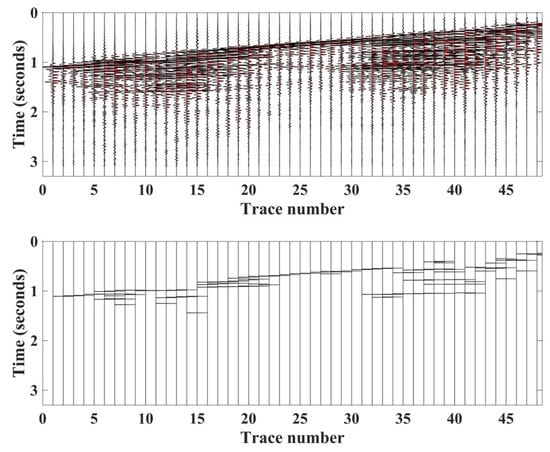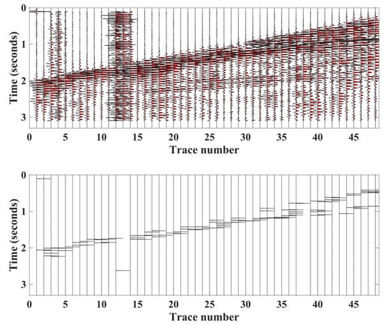 - Saragiotis, C.; Alkhalifah, T.; Fomel, S. Automatic traveltime picking using instantaneous traveltime. Geophysics 2013, 78, T53–T58. [Google Scholar] [CrossRef]