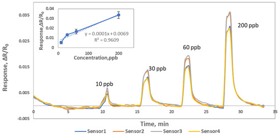 3.4. Selectivity and NO Detection Limit