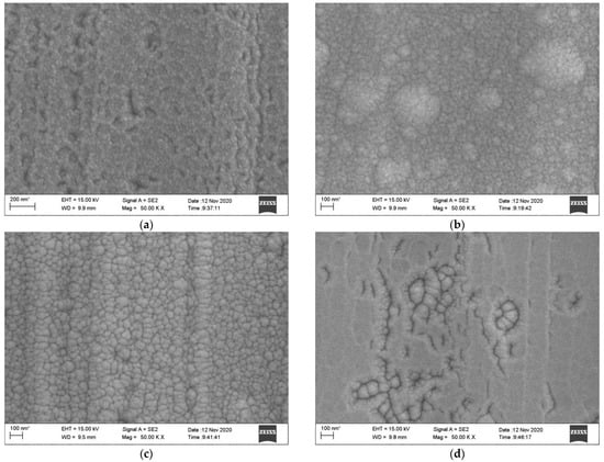 As shown in Figure 11, scanning electron microscopy (SEM) was used to observe the microstructure of different insulating layers. This showed that the particle surfaces of the single-layer and double-layer composite films had no significant gaps and holes, and the surfaces were compact but uneven. A few particle mounds appeared on the surface of the monolayer ZrO2, streak-like bumps appeared on the surface of the bilayer composite structure, and some cracks existed on the surface of the four-layer composite structure. However, the rest of the surface was flat and compact.