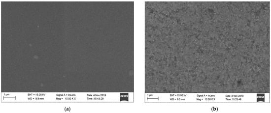 SEM comparison of PtRh6 films before and after annealing: (a) before annealing and (b) after annealing at 900 °C.