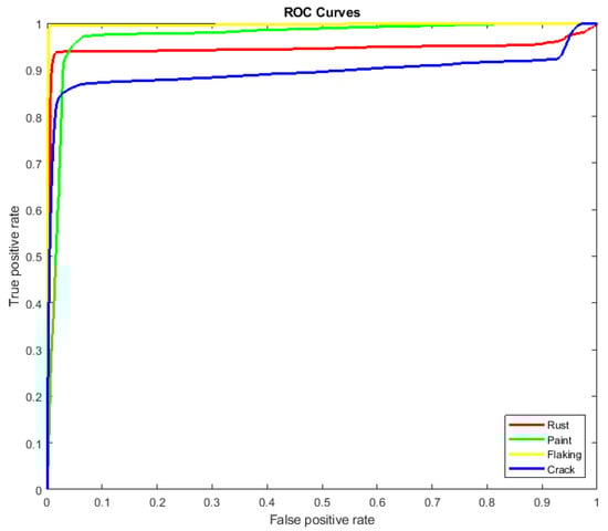 - The SVM is trained in a supervised learning mode based on a previously labeled training set with ground truth data for rust, flacking, and background classification. SVM was chosen for its ability to build an optimal decision hyperplane that separates classes. In this work, we use a multiclass SVM with a one against all approach. It is used as a simple segmentation method only for three-class classification (background, rust, and flaking). These three classes are discriminated by multiclass SVM because their features do not overlap in RGB color space.
