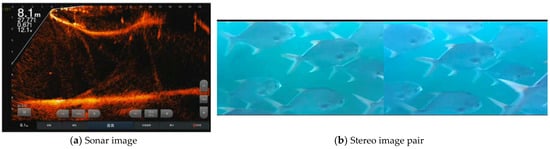 The sensor fusion consists of a stereo camera, and a sonar imaging device captures the fish images from a pond or a net cage. The 3D point clouds of the common object in the left image and the sonar image can be used to calculate the transformation matrix using a 3D affine transformation algorithm [54].