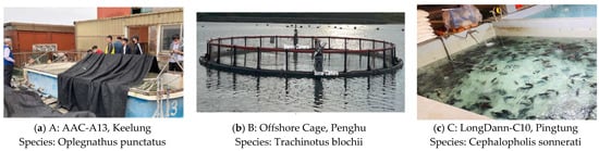 The experimental site has three locations representing indoor and outdoor environments and less dense and highly dense fish populations. Figure 6 shows the set-up of the environment and locations with its corresponding fish species. Fish tank A is 4 m in length, 1 m in width, and 0.8 m in depth, and the fish instances are small. Fish tank B is an off-shore cage with 50 m in circumference and 25 m in depth. Lastly, tank C with crowded fish instances is 5.3 m in length, 4 m in width, and 0.8 m in depth.