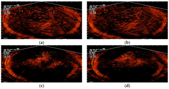 Figure 9 shows an example of the sonar images captured from a fish pond. Thus, each pixel in the sonar image would occupy an area of in the fish pond. If a sonar pixel occupies in the fish pond, the 3D coordinates of the pixel can be calculated as