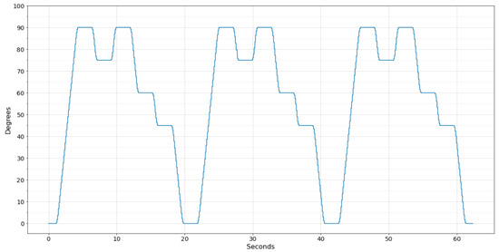 Finally, an example of the information that will be delivered in the administrative portal to the physician after each treatment session can be seen in Figure 15. In this case, the chart shows the volunteer’s knee angle movement during the test performed.