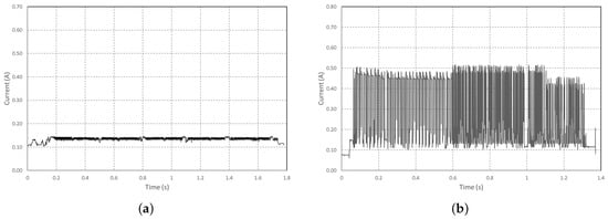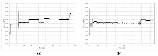 Due to the complex architecture of the ESP32 and the many peripherals present, the card’s boot takes time, but the power consumption is controlled and remains below 80 mA, and we can see measured current in Figure 4a. These current measurements allow quantifying the energy for each operation, presented in Table 4.