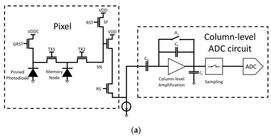 Figure 1 shows the schematic of a conventional 4T CIS readout chain based on a Pinned Photodiode (PPD), an in-pixel source follower stage and column-level amplification that are analyzed with correlated double sampling.