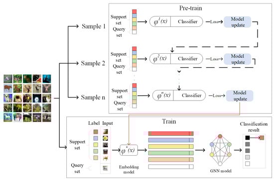 Before formal training, the feature extractor is pre-trained. The feature extraction model is optimized by meta-learning. Then, it is connected with a full-connection layer as a classifier model to start training.