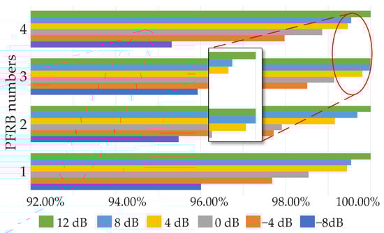 The accuracy of the BayesianPDL framework tested under different numbers of PFRBs in different noise environments, as shown in Figure 8. The BayesianPDL frameworks with different numbers of PFRBs are trained using six kinds of noise signals. Each noisy signal is used to obtain the training dataset, the validation dataset and the testing dataset.