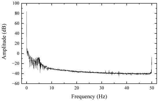 Observing Figure 12, we can find that the noise is mainly concentrated at low frequencies and 50 Hz. In order to reduce the error of these uncertainties on the data, we use low-pass filtering for the data. As shown in Figure 7, it can be seen that there are obvious deviations between the unfiltered data and the low-pass filtered data, and the two curves do not overlap; these deviations are mainly caused by the 50 Hz noise. According to the experimental site view, there are interference objects such as transmission lines around the environment.