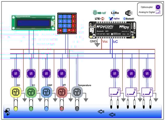 - Moparthi, N.R.; Mukesh, C.; Vidya Sagar, P. Water Quality Monitoring System Using IOT. In Proceedings of the 2018 Fourth International Conference on Advances in Electrical, Electronics, Information, Communication and Bio-Informatics (AEEICB), Chennai, India, 27–28 February 2018; pp. 1–5. [Google Scholar] [CrossRef]