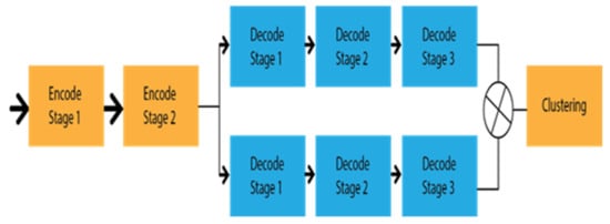 To detect multi lanes with changes from the lanes, Davy et al. [63] introduced an end-to-end lane detection approach by applying the LaneNet deep learning method based on the encoding–decoding procedure E-Net [64], as shown in Figure 12. It takes the shared encodes from the input images and finds the embedding binary segmentation for each pixel for creating the cluster together. All pixels can associate with the neighbourhood pixels. It utilized the H-Net to collect the ideal information about the perspective transformation by imposing a relevant condition on the input image. The research aimed to take the challenge on lane changes, unlike the bird’s eye view. Additionally, this approach has no limitation on the number of lanes, whereas CooNet and SCNN can only detect up to four lanes.