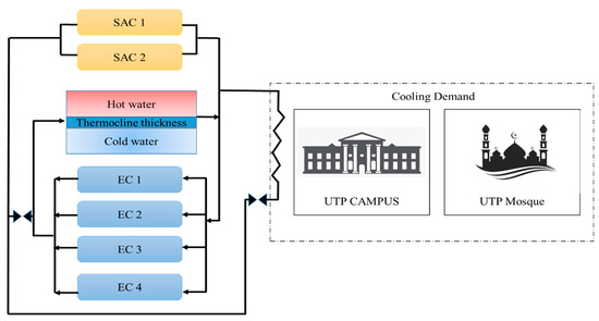 - Majid, M.A.A.; Muhammad, M.; Hampo, C.C.; Akmar, A.B. Analysis of a Thermal Energy Storage Tank in a Large District Cooling System: A Case Study. Processes 2020, 8, 1158. [Google Scholar] [CrossRef]