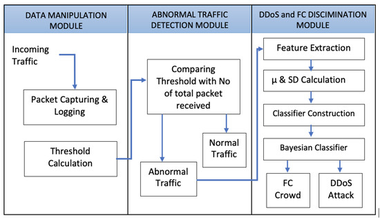 In the approach STONE [6], an online anomaly-based attack detection framework is used. This approach has consisted of two major components: the detection control center and the mitigation center. The first component is responsible for anomaly detection, while the latter is used to filter out and block DDoS attacks. While considering the FC versus DDoS distinguishment, there is limited work published. Normally, the existing detection techniques are either heuristic-based defense techniques or statistical-based defense techniques, which depend on header information of IP (internet protocol) packets to separate valid nodes traffic from malicious nodes traffic. Nevertheless, in these techniques, none of them is efficient when FC events occur because the genuine traffic flow and attack flow share similar properties [8]. Therefore, payload size and arrival time-based detection technique is more desirable when DDoS attacks and FC occur concurrently.