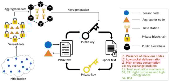 - Kumar, M.H.; Mohanraj, V.; Suresh, Y.; Senthilkumar, J.; Nagalalli, G. Trust aware localized routing and class based dynamic block chain encryption scheme for improved security in WSN. J. Ambient. Intell. Humaniz. Comput. 2021, 12, 5287–5295. [Google Scholar] [CrossRef]