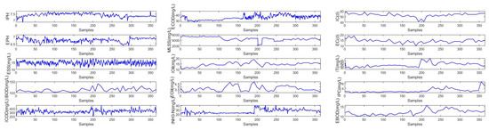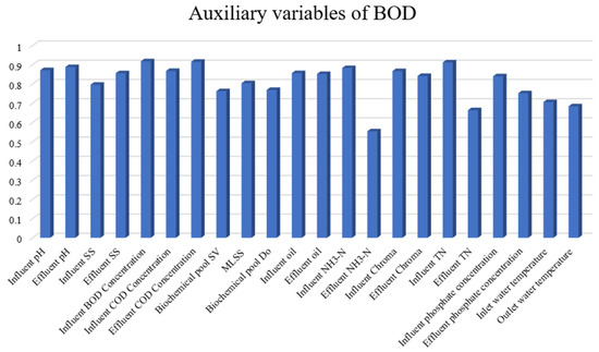 In this experiment, the NH3-N effluent data set is considered, which has been described in [44]. First, the gray correlation degree is calculated from (7), and the results are presented in Figure 14. In addition, each selected auxiliary datum of the NH3-N data set is shown in Figure 15.