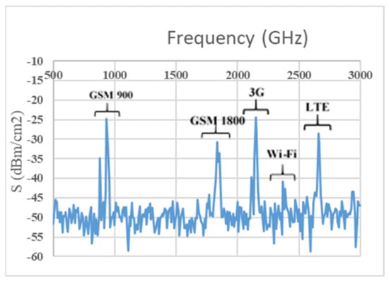 However, a rectenna’s key importance is to design a multi-frequency wideband antenna because it can harvest RF energy from over all frequency bands concurrently available in an ambient environment. Additionally, a multi-frequency broadband rectifier is also necessary to convert DC energy for all captured signals by the multiband antenna. Moreover, the non-linear rectifier circuit’s input impedance varies with different frequencies, input RF power density level, and load impedance, respectively. Some dual-band harvesters, multiband harvesters, and broadband harvesters have been designed [4,5,6,12,16,17,18,19,20], but there are several limitations. In this paper, a wideband multi-frequency RF harvester (i.e., wideband log-periodic antenna and broadband rectifier including a novel RF filtering concept) is proposed to harvest energy from all available RF energy sources that exist in the ambient environment. To illustrate the feasibility of implementing a multiband ambient RF energy harvesting technique, we initially depicted an RF power spectral survey’s detailed results in this research, specifying suitable urban locations and available frequency bands with associated RF input power levels for scavenging. Based on these RF survey results, a multi-frequency highly sensitive RF harvester is then designed and fabricated, and its performances under energy scavenging operation are considered employing in situ field strength measurements.