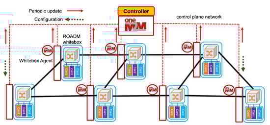 - Suzuki, M.; Tsuritani, T. Management and control of transparent optical network considering physical impairments. In Proceedings of the 2009 11th International Conference on Transparent Optical Networks, Ponta Delgada, Portugal, 28 June–2 July 2009; pp. 1–4. [Google Scholar] [CrossRef]