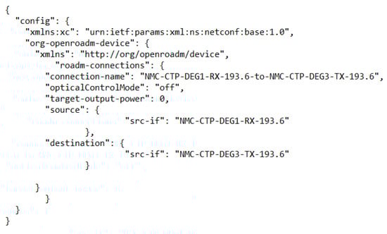 - Sgambelluri, A.; Giorgetti, A.; Scano, D.; Cugini, F.; Paolucci, F. OpenConfig and OpenROADM Automation of Operational Modes in Disaggregated Optical Networks. IEEE Access 2020, 8, 190094–190107. [Google Scholar] [CrossRef]