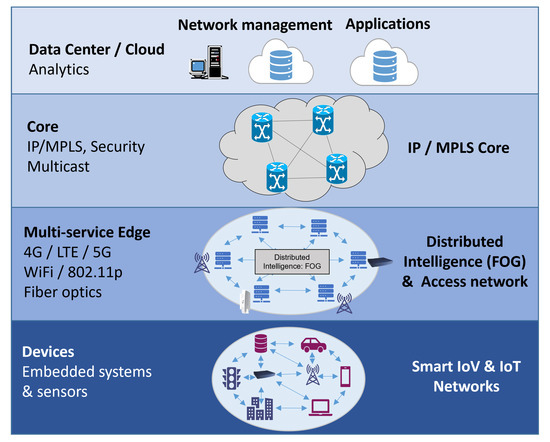 As we know it today, the Internet of Vehicles (IoV) focuses on the intelligent integration of humans, vehicles, things, and environments. It is a more extensive network that provides services for large cities or even a whole country. The IoV is an open, integrated network system with high manageability, controllability, operationalization, and credibility. It is composed of multiple users, vehicles, infrastructure, and networks [2,3].