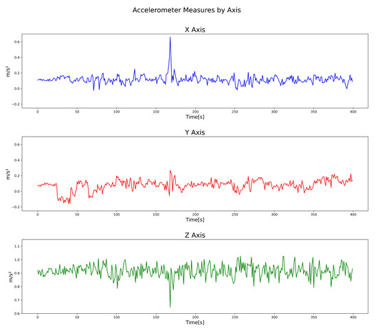All samples were subsequently labeled by type of anomaly. For each of the 24 detected elements, a review of the event window was carried out. The definition of the window size was based on a graphical analysis of the time series plot of the measurements. The proposed windows consider a mean duration of each type of anomaly; a specific number of acceleration input samples was defined: