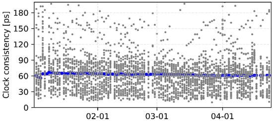 where is the calibrated clock of analysis center with consistency correction and alignment of the time scale. is the weight of individual analysis centers, which is determined by the weighted RMS of clock residuals for each system by .
