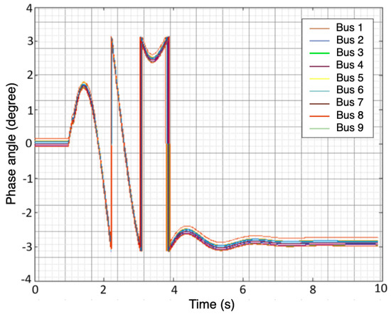 Phase angle of the 9 buses after injecting three—phase fault.
