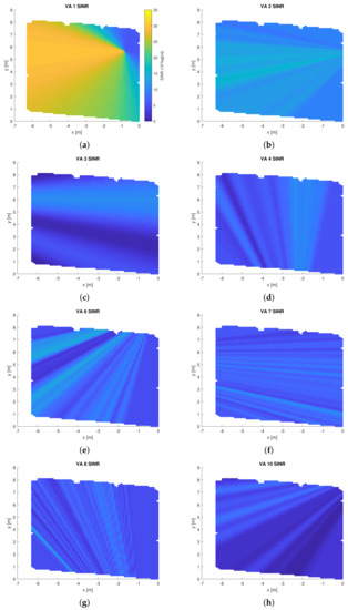 As shown in Figure 6f,g,i,k, for VA 7, 8, 11 and 13, the SINR is not as good as the first-order SMCs, but better than the other second-order SMCs shown in Figure 6h,j,l,m,n.