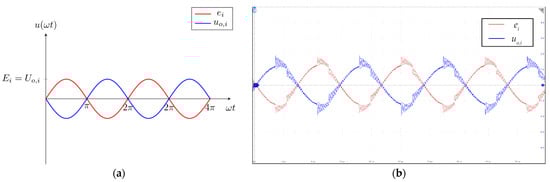 Input and output voltages of the second stage of the measurement circuit: (a) theoretical waveforms; (b) waveforms measured on the measurement system.